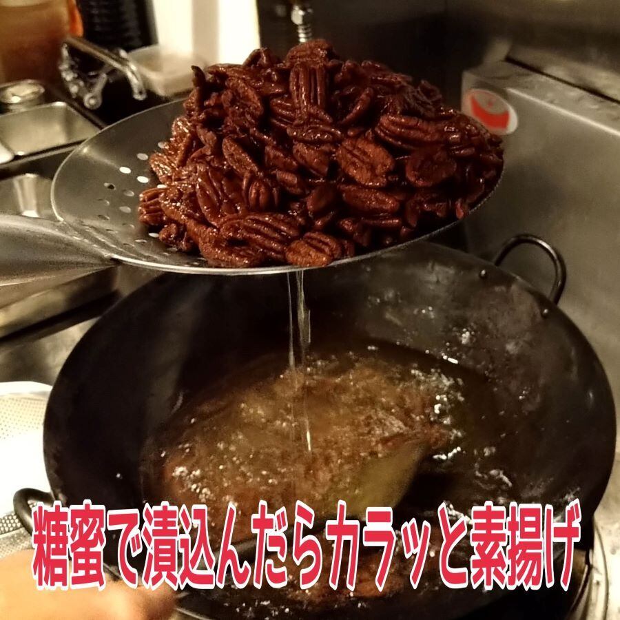★飲食店仲間の東京の高級料理店が提供する「お土産用ピーカンナッツ」に惚れ込み、作り方を教わってその極蜜の甘さと香ばしさと食感を当店でも再現!